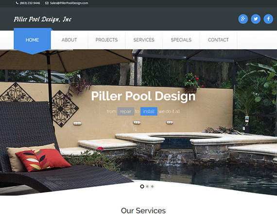 Local Swimming Pool Builder, custom responsive website with gallery of past work.